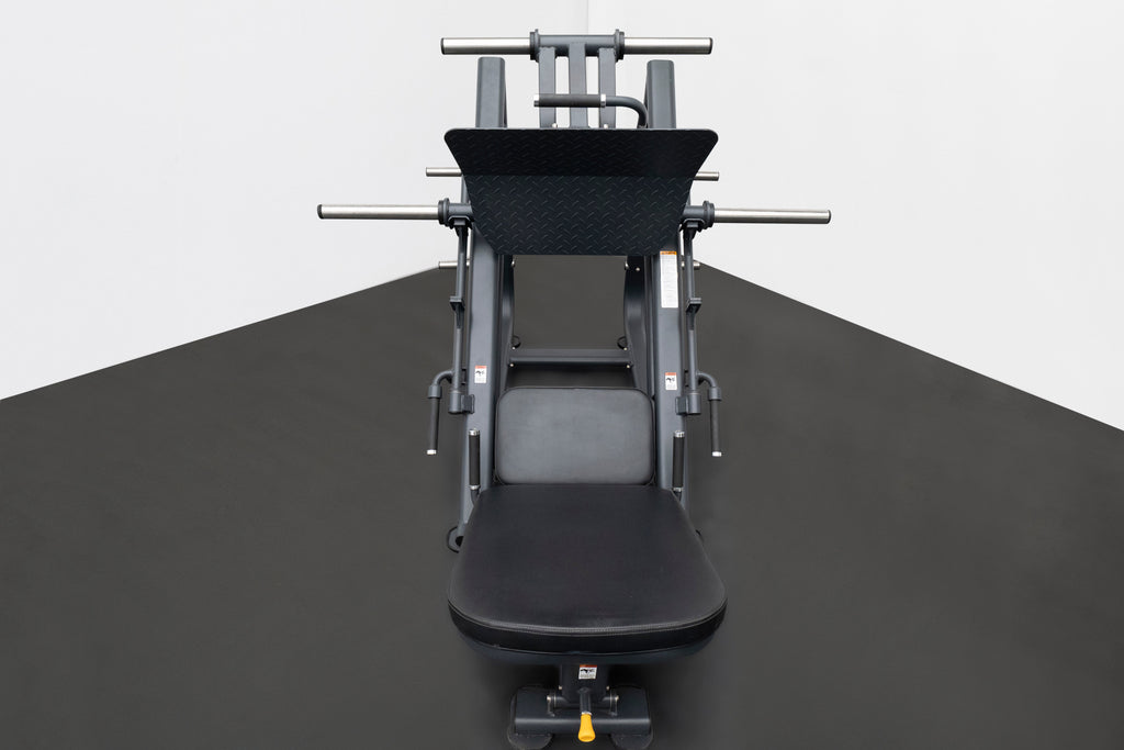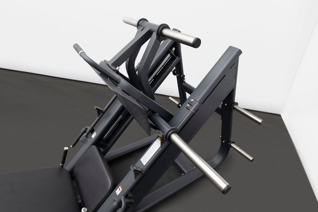 BodyKore Signature Series- Bodykore 45 Degree Commercial Leg Press offers a max load of 900lbs, classic – targeted movement; pared with a new age design. It is equipped with guided motion and safety locking points, six Olympic plate storage posts, extra-wide footplate & wide range of seat-back adjustments maximizing the range of motion. The Body Kore 45 Degree Leg Press is built of commercial grade, ergonomically designed oval 11-gauge steel that gives the G277 a modern look and superior stability. This machine is commercial grade and rated to hold over 1000lbs.
